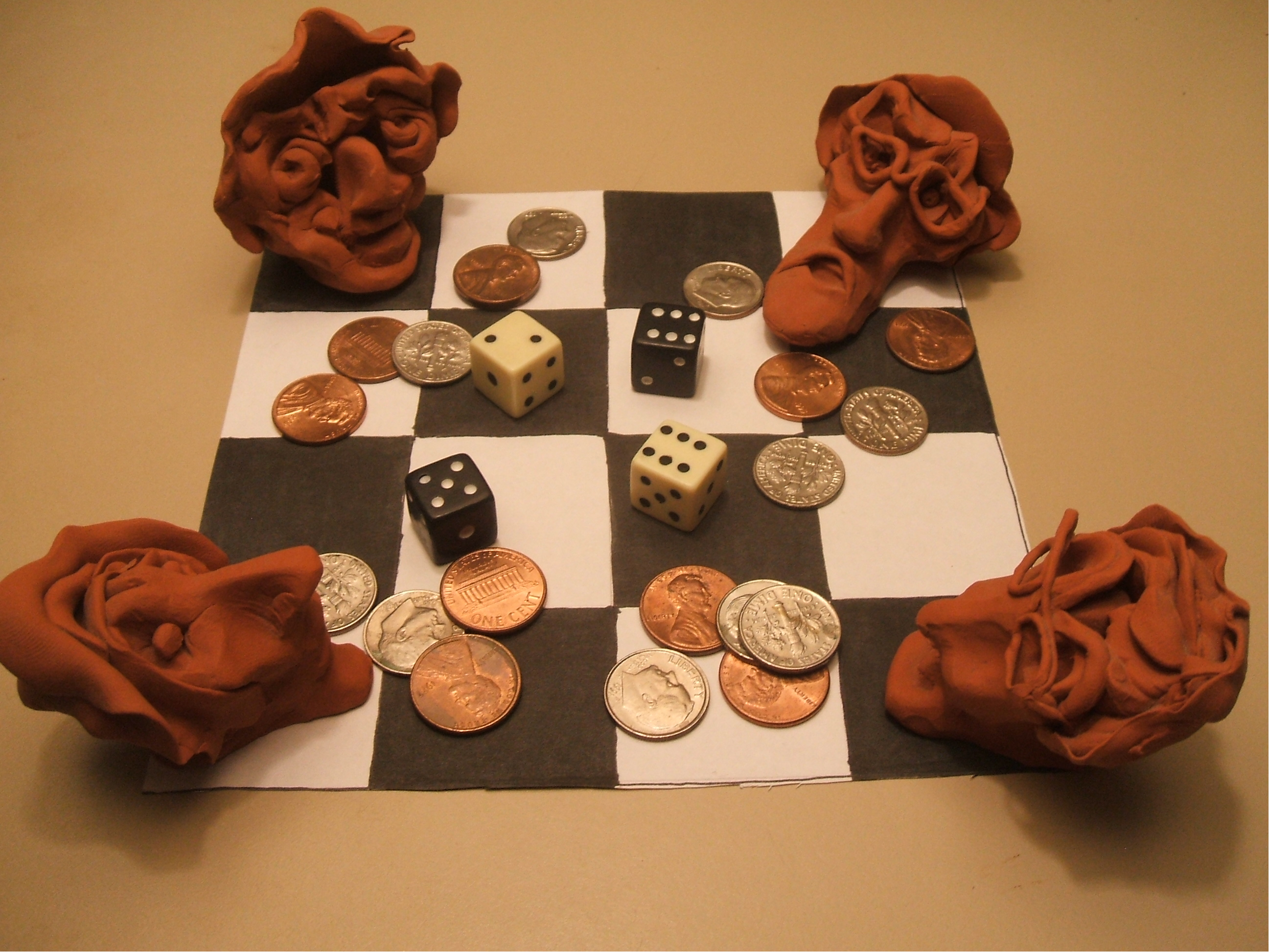 The significance of the chessboard design on which the four gamblers sit is that the gamblers are themselves pawns in a larger game being played out in the world they inhabit.
